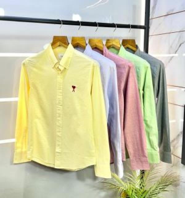 Home Shirts Ami Paris Pink Embroidery Logo Premium Shirt (1808)