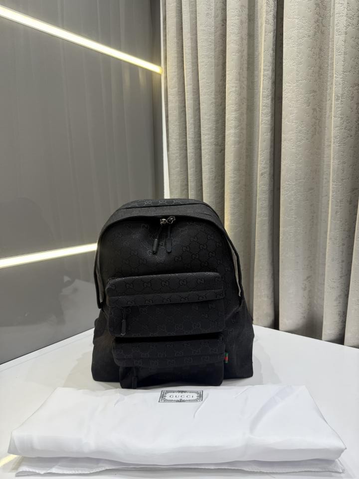 GUCC.I GG BLACK CANVAS PREMIUM CLASSIC UNISEX BAGPACK WITH DUST BAG