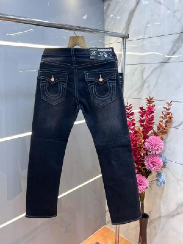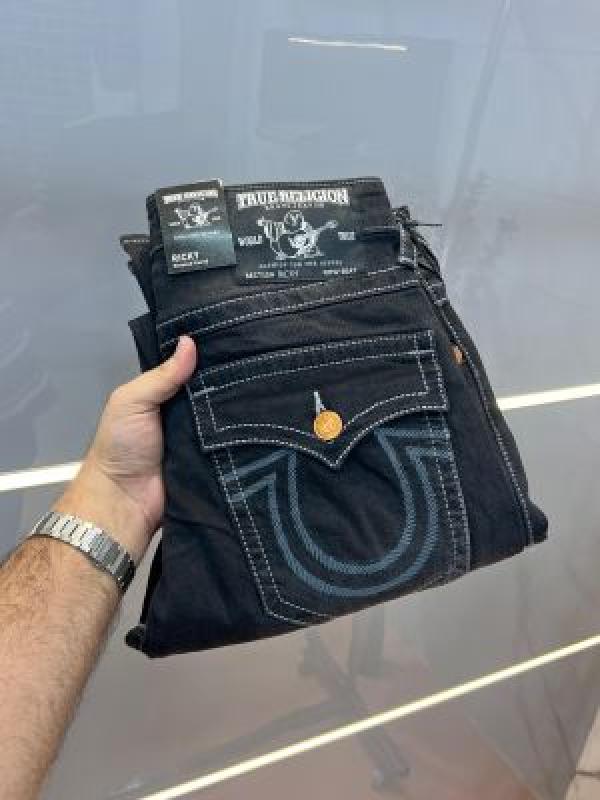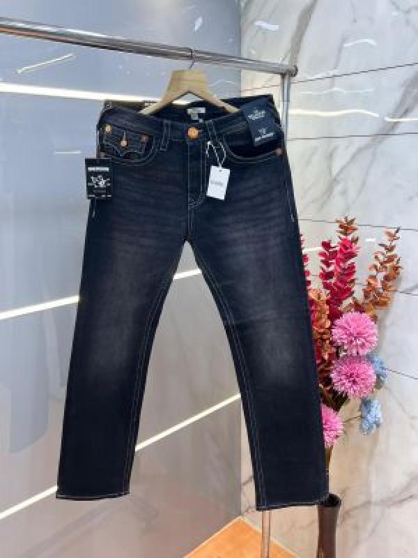 Home Jeans True Religio n Black Shade Straight fit Premium Imported Stretchable Lycra Fabric Denim with Back Flap pocket Design 3394